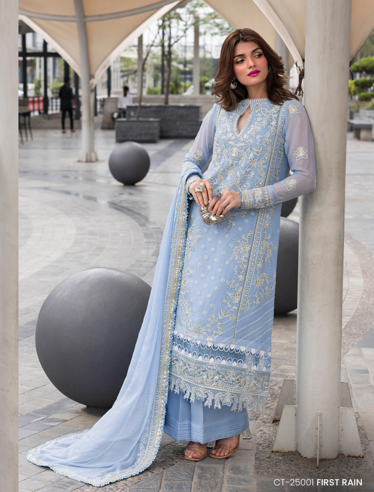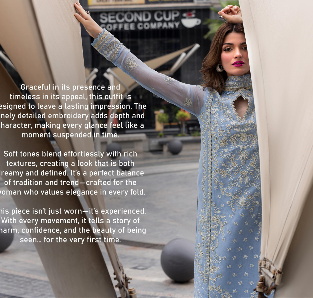 • Dupatta: Lightweight, digitally printed pure fancy lawn offering airy flair.