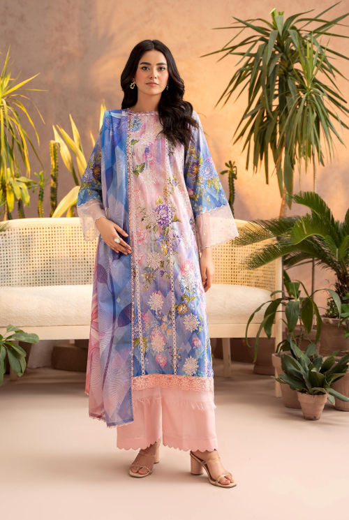 Front: Digital Printed Lawn Embroidered Neck.