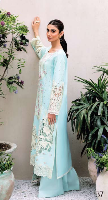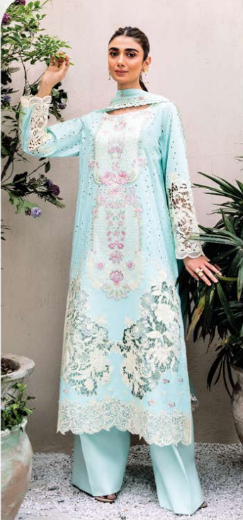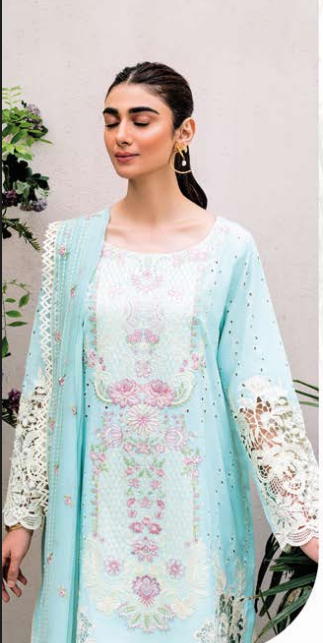Shirt (Front): Digitally printed lawn with an intricately embroidered neckline.