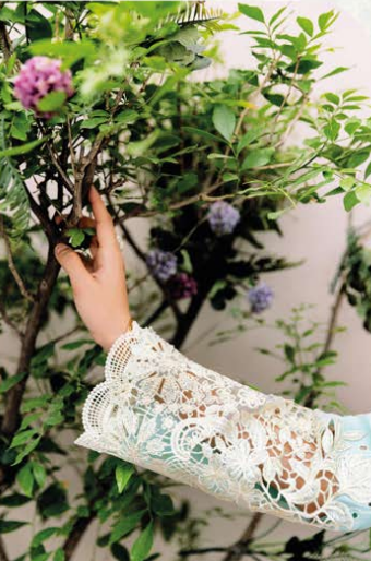 Lace Detail: Coordinated organza lace featuring matching embroidery adds delicate craftsmanship.