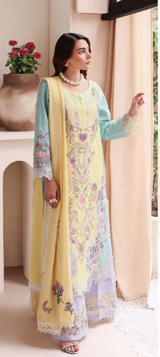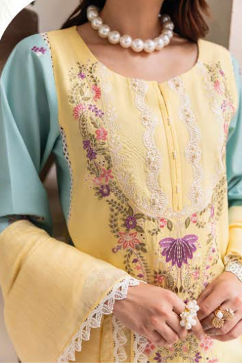 • Dupatta: Pure fancy lawn, digitally printed—light, airy, and visually striking.