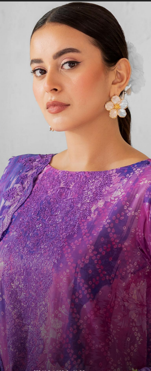 ✨ Duppata: Digital Printed Bamber Chiffon Embroidered Cut-Work