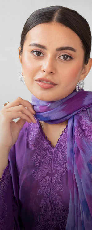 ✨ Duppata: Digital Printed Bamber Chiffon Embroidered Cut-Work