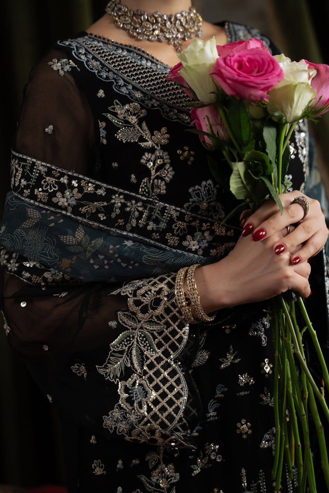 - Embroidered Chiffon Sleeves