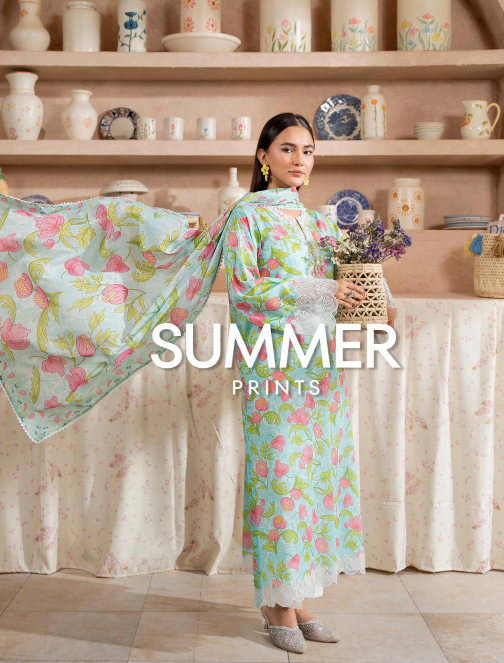 • Back & Sleeves: Both use the same printed lawn fabric; the sleeves are richly ornamented with organza embroidery to complement the neckline and add texture.