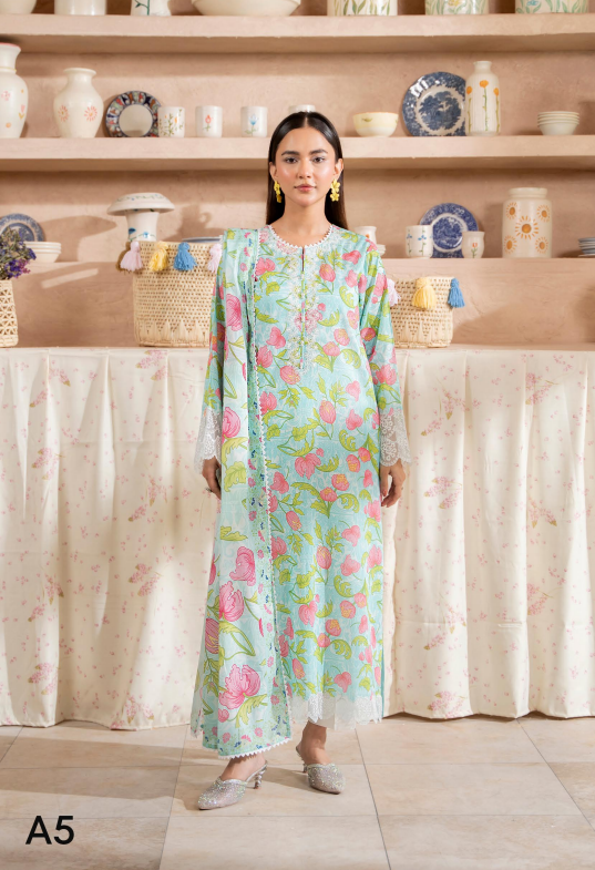 • Front: Digital printed lawn with embroidery at neck & lace daman.