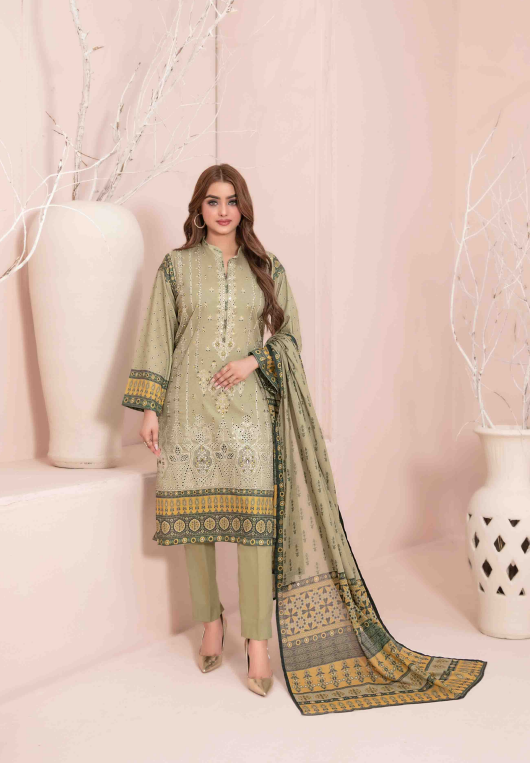 3 Piece Un-Stitched Collection By Tawakkal Fabrics, Attractive & Elegant Lawn Collection comes with: