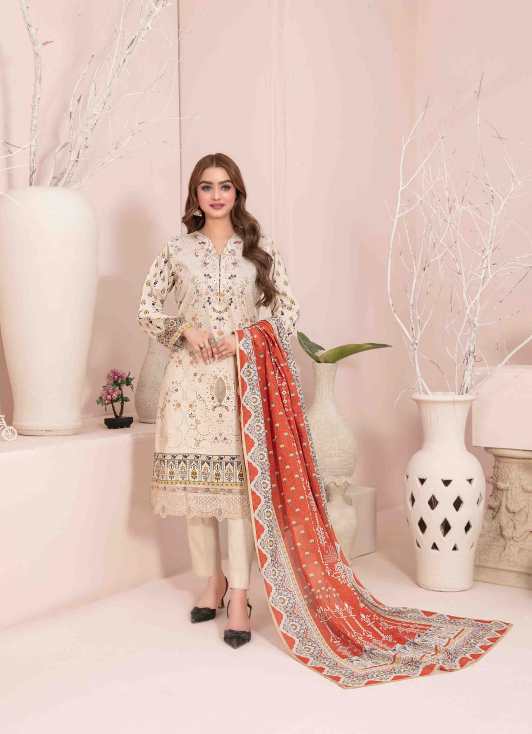 3 Piece Un-Stitched Collection By Tawakkal Fabrics, Attractive & Elegant Lawn Collection comes with: