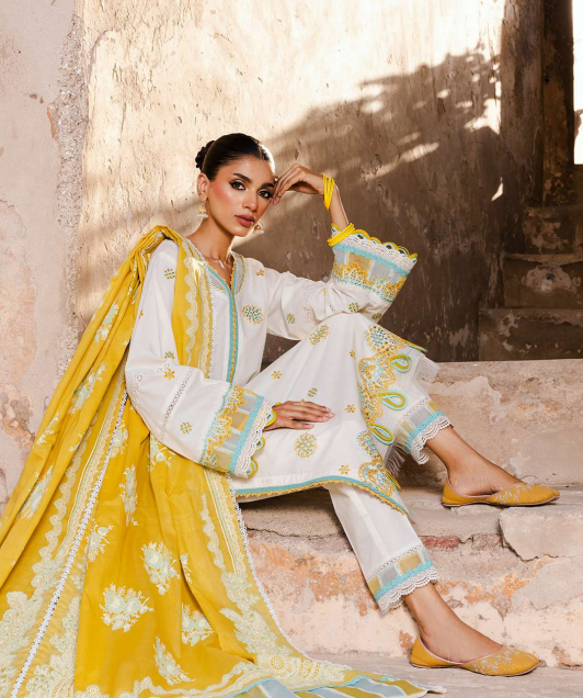 Additional Description:Â This elegant white pret set features an embroidered kurta paired with a matching dupatta and trouser, crafted from breathable lawn fabric. Designed for women seeking both comfort and style, this ensemble offers a refined look suitable for various occasions. The lightweight material ensures ease of wear, while the intricate embroidery adds a touch of sophistication.